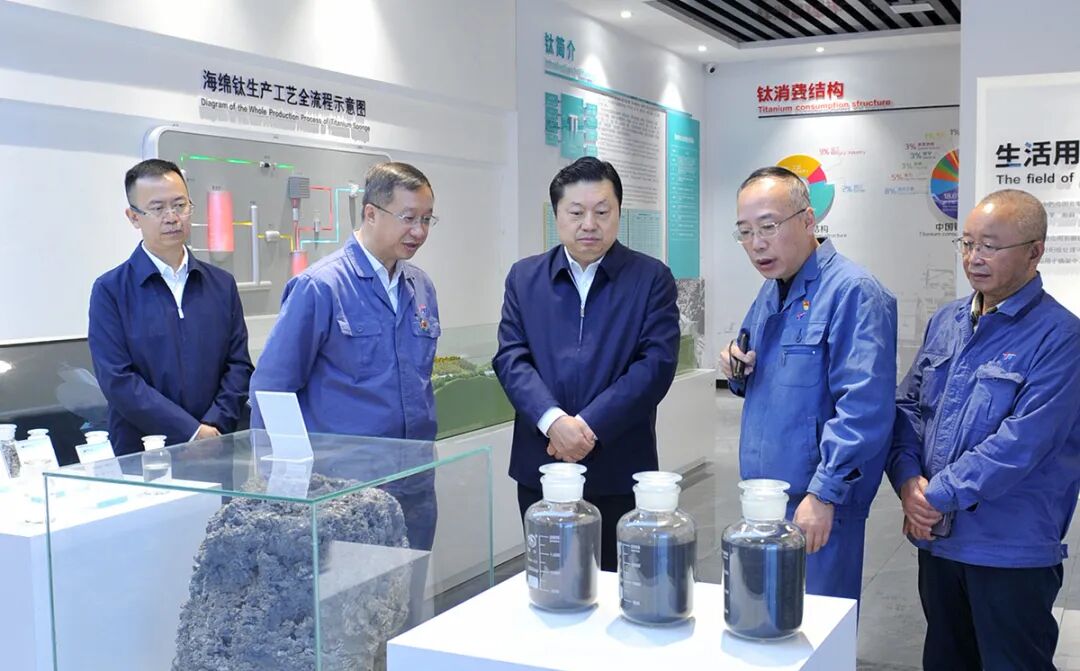 刘永升在遵钛集团党委副书记、总经理杨茂麟陪同下,参观遵钛集团厂史馆,深入了解遵钛集团的发展历程和企业文化;实地查看海绵钛成品破碎生产线、还蒸及镁电解工序,全方位了解海绵钛生产工艺流程。