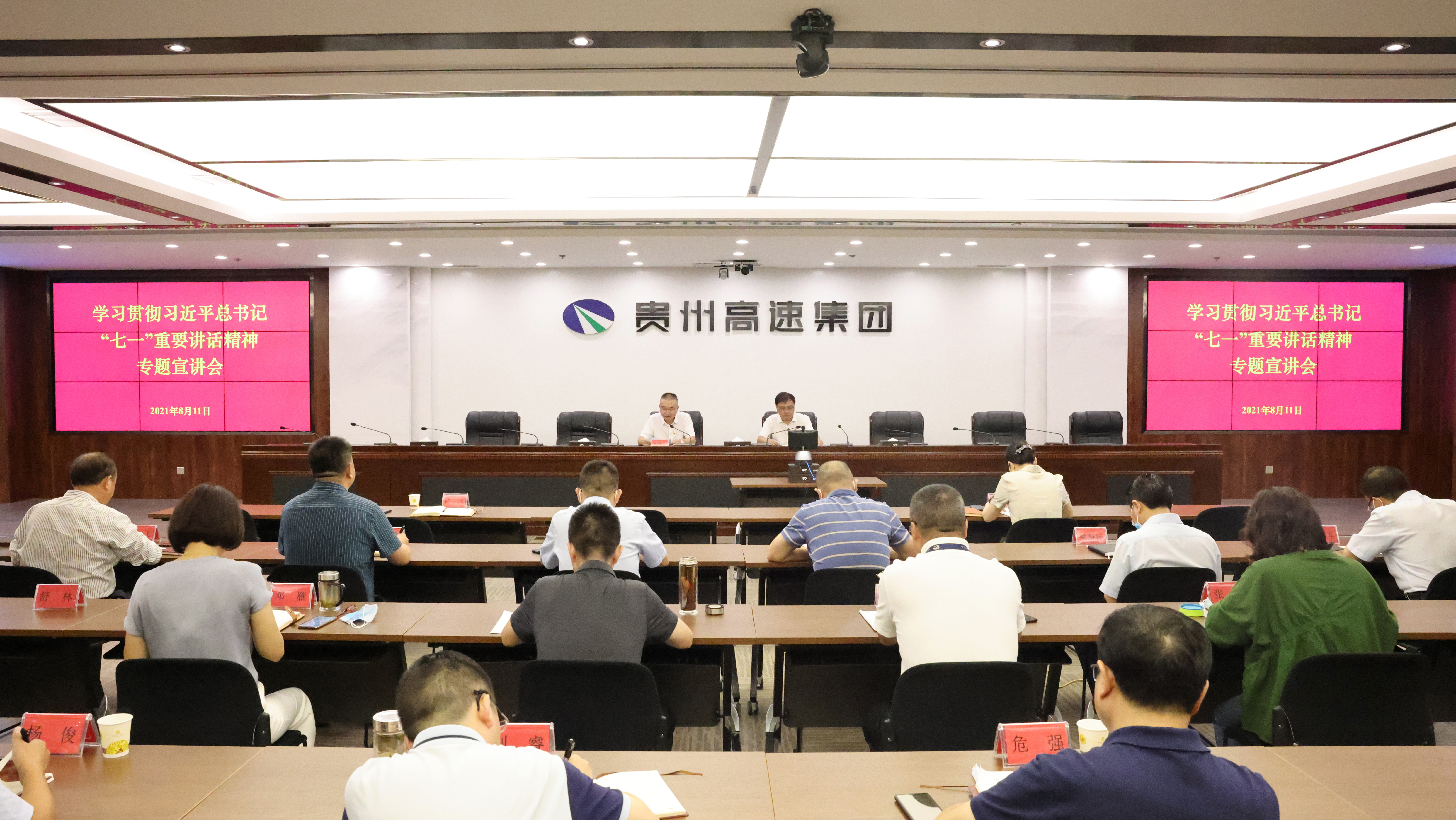 8月11日,贵州高速集团党委书记、董事长龙平江在四楼会议室专题宣讲习近平总书记“七一”重要讲话精神,集团公司在家领导周旭初、陈虎参加会议。