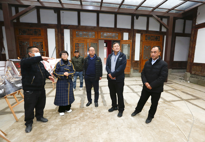 在板桥镇娄山关社区红色美丽村庄试点建设项目娄山红研学基地、非遗工坊、宜居农房、娄山红剧场、藤编一条街等,社区相关负责人向贵绳集团公司领导马显红、马明刚、王维仲介绍了示范村在村庄规划、村庄建设、生态环境、经济发展、公共服务、乡风文明等方面的建设推进情况。