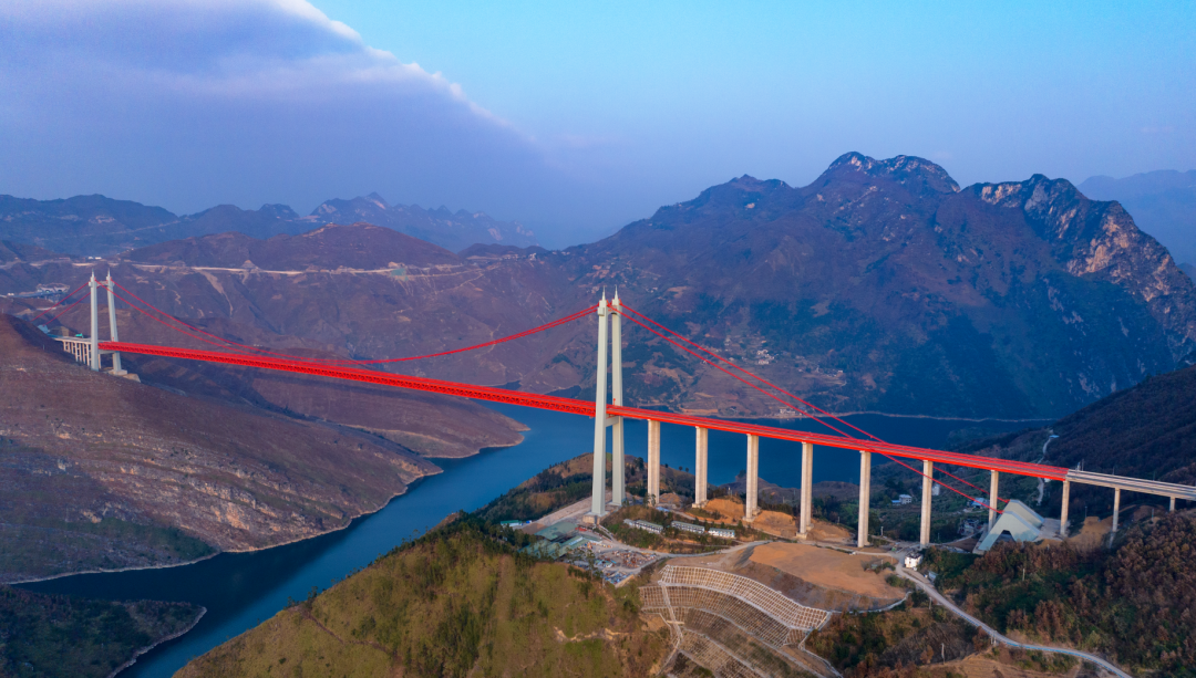 兴义环高峰林大桥是中国山区第一座大跨径钢混结合梁悬索桥,施工条件复杂,技术难度大,环境保护要求高。翁学新首创国内高速公路悬索桥混凝土主塔横梁整体预制吊装施工工艺,解决了传统横梁施工方式工效慢、高空作业风险高的缺陷,大桥中横梁还以1470吨的重量刷新了山区峡谷桥梁预制吊装混凝土构件的世界纪录。